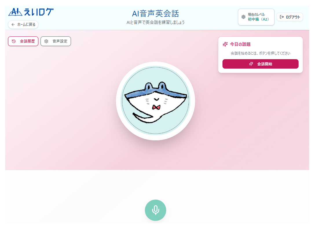 毎日書いた日記の内容を元に、AIと英会話の練習ができます。日記で書いたことがテーマだから、自分に身近な話題で実践的な会話ができます。