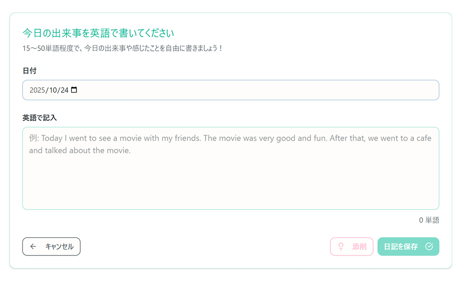 AIの力で、英語日記をもっと手軽に、もっと楽しく。